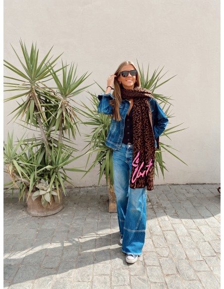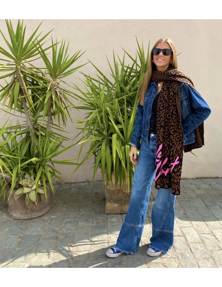 BUFANDA LUZ VIBRANT COQUETTE LEOPARDO NEGRO-CAFÉ Letras Rosa